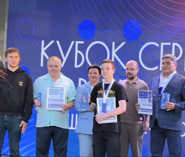 Главный трофей нашему парню вручали гроссмейстер Сергей Карякин и министр спорта Подмосковья Дмитрий Абарёнов.